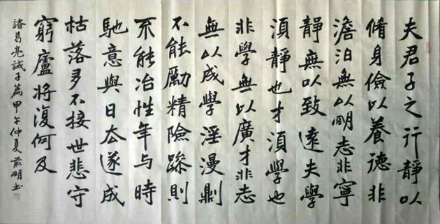 李前明,号永和居士,1964年生,湖北石首市人,大专学历。深圳市书法家协会会员,广东省书法家协会会员,中国书法研究会会员,王铎书画院名誉院长,中国(观澜)山水国画产业基地首席书法家,深圳东湖美术馆常务副馆长,淡浮院(香港)鸿福书画院深圳永福堂副院长。现居深圳。 四十年来勤耕笔墨,寒暑不辍。开始学书从颜楷入手,后习欧阳询、褚遂良、张玄墓志、元氏墓志、李邕岳麓山碑、唐人小楷、魏晋小楷,行书学二王、米芾,草书习王羲之、怀素,隶书从乙瑛碑入手,兼习曹全碑,尤善楷书和行书。 李前明勤奋用功,心追手摹,在碑山帖海中徜徉,长期的临池不辍,积累了深厚的传统功力。从唐楷到魏晋小楷,行草书、魏碑,再从晋人行草书到宋人行草书。几十年来临摹了几十种经典碑帖,打下了坚实的基础。 近几年来他潜心研究楷书,对历代经典楷书都研究和实践,从中楷、大楷到蝇头小楷,既有唐人的法度,又有晋人的韵致;用笔精致,结体宽博,又灵活,端正,秀逸,充满书卷气,逐步形成了他的风格。 特别是在楷书的基础上融入行草和隶书,别开生面,既见趣味、又见性情、又出风神。在全国、省、市书法展览中获奖若干,并获得评委和同行好评。 为促进两岸四地文化交流多次受邀到港澳台展览和拍卖,部分作品被党和国家领导人,省、市、区领导、企业家、外国友人和有关文化收藏部门及寺庙收藏。